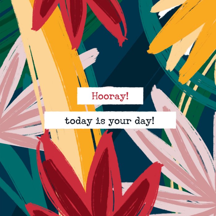 Leuke en fleurige kaart voor secretaresse dag. Op de kaart staan bloemen en de tekst: Hooray! today is your day!