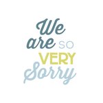 Een sorry kaart met verschillende kleuren en de tekst "We are so very sorry".