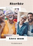 Lieve sterkte kaart met foto en de tekst: Sterkte, heel veel liefs. Lieve mam we denken aan je