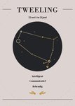 Dit is toch geweldig! Een sterrenbeelden kaart voor het sterrenbeeld tweeling. Tweelingen zijn jarig tussen 22 mei en 21 juni. De eigenschappen zijn aanpasbaar.