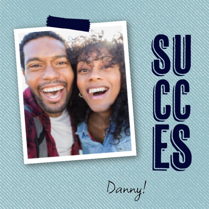 Wens iemand succes met deze hippe succes kaart. Op de voorkant van deze kaart kan je een foto plaatsen en de naam van de ontvanger toevoegen.