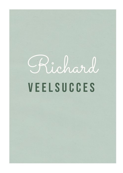 Wil je een collega succes wensen? Doe dat dan met deze kaart van Greetz. Op de kaart staat: veel succes. Ook kun je een naam toevoegen.