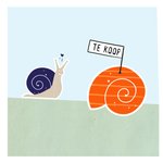 Deze slak is op zoek naar een nieuwe woning. Waarschijnlijk wordt het deze rode met witte stippen, want deze slak is op slag verliefd.