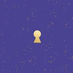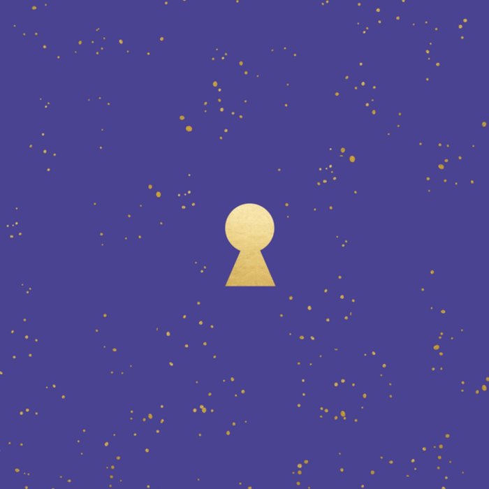 Blauw/paarse verhuiskaart van Greetz, met afbeelding van sleutelgat.