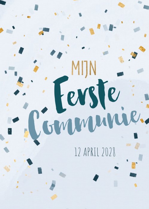 Yes je zoon gaat zijn eerste communie doen. Wat een feest is dat. Nodig iedereen uit met deze leuke uitnodiging met confetti. De uitnodiging is extra persoonlijk omdat je de datum op de uitnodiging kan vermelden.
