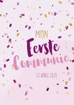 Yes je dochter gaat zijn eerste communie doen. Wat een feest is dat. Nodig iedereen uit met deze leuke uitnodiging met confetti. De uitnodiging is extra persoonlijk omdat je de datum op de uitnodiging kan vermelden.