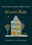 Leuke uitnodiging met illustratie voor een kerstdiner in jullie nieuwe huis.