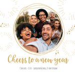 Luid het nieuwe jaar goed in en nodig uw zakelijke relaties uit voor een gezellige nieuwjaarsreceptie. Met dit design extra persoonlijk door uw eigen foto in te voegen. De tekst onderaan is uiteraard aanpasbaar. "Cheers to a new year"