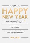 Leuke uitnodiging voor een nieuwjaarsfeestje, op de lijntjes kan eenvoudig de naam van de geaderiseerde in worden gevuld. Uit de collectie van Greetz.
