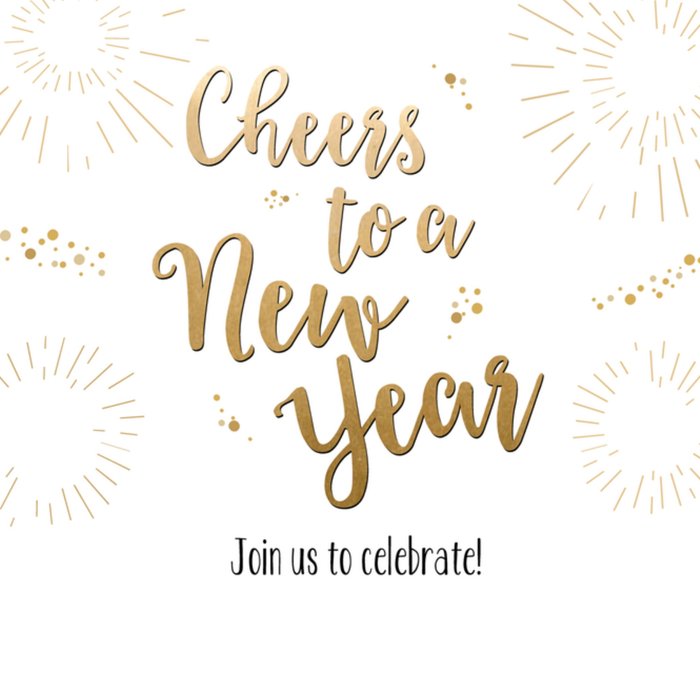 Niets is leuker dan het nieuwe jaar inluiden met je familie & vrienden! Nodig nu iedereen uit met deze feestelijke kaart. Er staat 'Cheers to new year'.