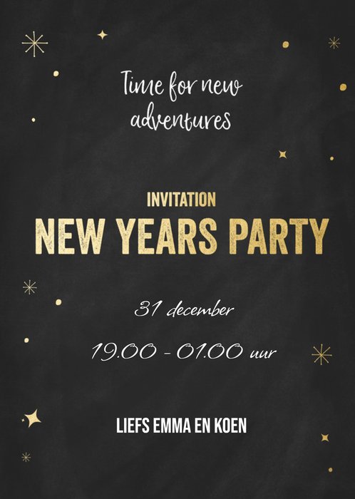 Time for new adventures, staat er op deze leuke nieuwjaarsuitnodiging van Greetz. Je kunt op de voorkant van de kaart informatie kwijt.