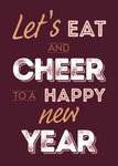 Proosten op het nieuwe jaar doe je natuurlijk met je vrienden en familie. Nodig ze met deze leuke uitnodiging uit voor een nieuwjaarsborrel met de tekst: Let's eat and cheer to a happy new year.