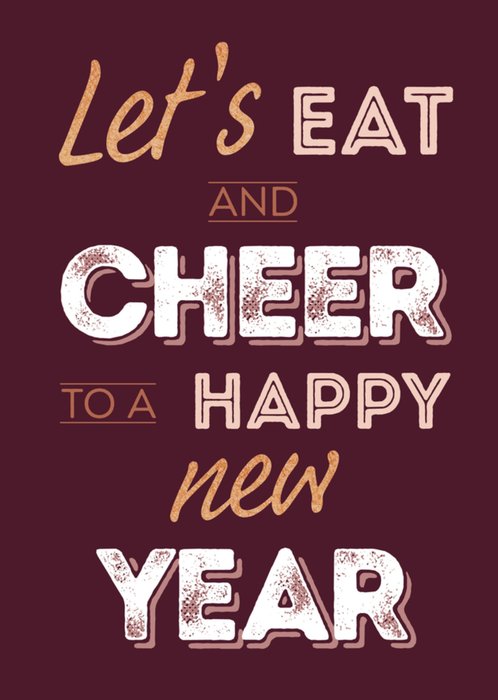 Proosten op het nieuwe jaar doe je natuurlijk met je vrienden en familie. Nodig ze met deze leuke uitnodiging uit voor een nieuwjaarsborrel met de tekst: Let's eat and cheer to a happy new year.