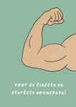 Kleurrijke vaderdagkaart met de tekst: Voor de liefste en sterkste bonuspapa!