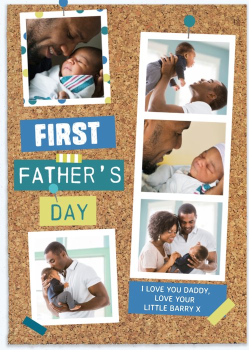 Stuur deze lieve en leuke Vaderdag kaart naar je vader voor Vaderdag. Op de kaart staat: First Father's day. Je kunt foto's en tekst toevoegen.