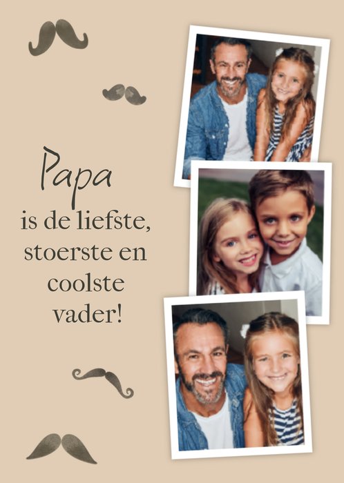 Lieve vaderdagkaart met de tekst: Papa is de liefste, stoerste en coolste vader! Ook kun je meerdere foto's toevoegen.