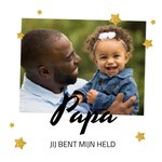 Leuke vaderdagkaart met sterren en de tekst: Papa jij bent mijn held. Ook kun je een foto toevoegen.