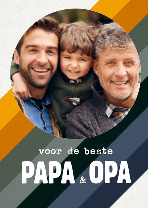 Een vrolijke en kleurrijke vaderdagkaart met foto en tekst: "voor de beste papa & opa."