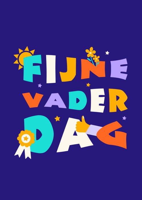 Kleurrijke vaderdagkaart met de tekst en mini illustraties.