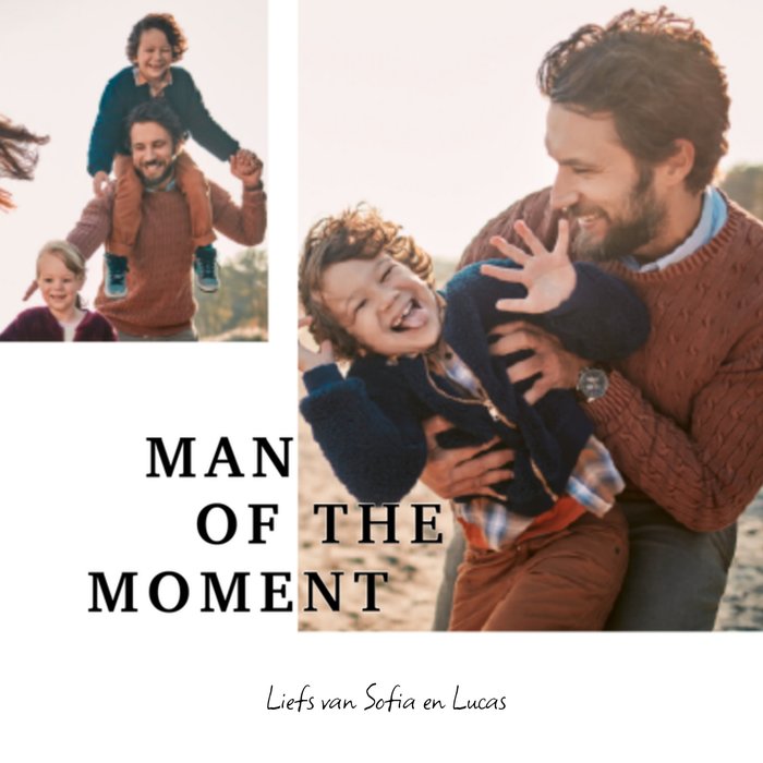 Leuke vaderdagkaart met foto's en aanpasbare naam.