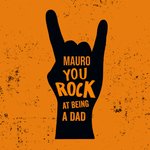 Een stoere vaderdagkaart met rock hand erop voor een stoere vader. De naam is aanpasbaar. "You rock being a dad."