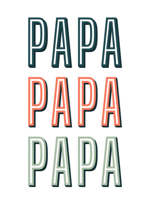 Een duidelijke vaderdagkaart met daarop drie keer het woord PAPA.