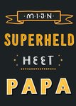 Verras jouw vader met deze vaderdagkaart. Op de kaart staat de tekst 'mijn superheld heet papa'.
