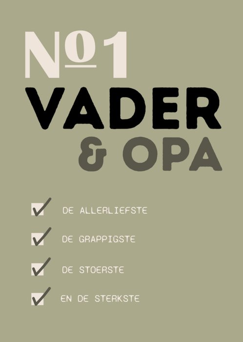 Een super lieve Vaderdag kaart voor de nummer 1 vader en opa. De kenmerken zijn natuurlijk aanpasbaar, zodat de kaart nog persoonlijker wordt.