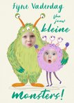 Schattig Vaderdagkaart met 2 monster illustraties, met foto's