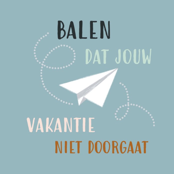 Verras met deze wenskaart met de tekst: Balen dat jouw vakantie niet doorgaat.