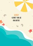 Ken je iemand die zometeen heerlijk op vakantie gaat? Stuur dan een strandkaartje van Greetz! Op deze kaart staat: Geniet van je vakantie. Ook kun je een naam toevoegen.