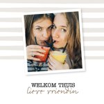 Wens je vriendin een fijne thuiskomst met de tekst: Welkom thuis, lieve vriendin. Ook kun je een foto toevoegen.