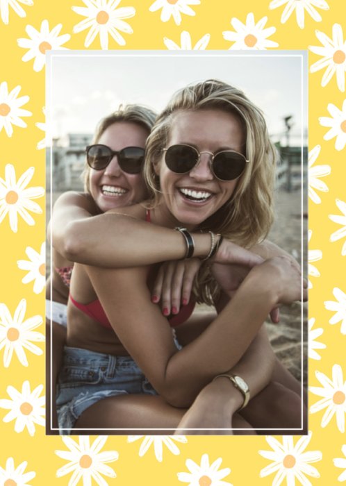 Een heerlijk zomers kaartje met jouw foto erop, omlijst met margrietjes.