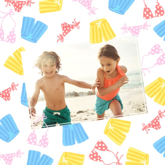 Doe vrienden en familie de groetjes met dit zomerse vakantie kaartje. Voeg er een leuke foto aan toe hij is helemaal af!