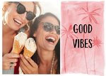 Good vibes. Verstuur jouw lekkerste zomerkiekje met dit lekkere kaartje met palmbomen. De tekst is overigens aanpasbaar.