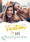 Zomerse kaart met foto om de vakantie in eigen tuin te vieren. "Vacation in los backyardos".