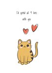 Schattige valentijnskaart met een kat en twee rode hartjes op de kaart en de tekst: I'd spend all 9 lives with you.