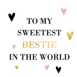 Stuur deze valentijnskaart naar je bestie met op de kaart allemaal hartjes en de tekst: To my sweetest bestie in the world.