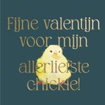 Mooie valentijnskaart met een kuiken en de tekst: 'Fijne valentijn voor mijn allerliefste chickie!'. Verras iemand met deze lieve valentijnskaart van Greetz.