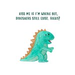Schattig liefdeskaartje met een dinosaurus en de tekst: "Kiss me if i'm wrong but... dinosaurs still exist, right? De ontvanger hoeft niet lang meer na te denken wie er op een kusje zit te wachten. ;-)