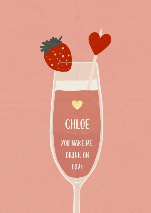Stuur deze valentijnskaart naar iemand waar je helemaal verliefd op bent met op de kaart de tekst: You make me drunk on love. De naam op de kaart is aanpasbaar.