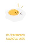 Grappgie Valentijnskaart met illustratie van een ei en de tekstL I'm scrambled without you.
