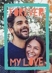 Kleurrijke valentijnskaart met aanpasbare foto en de tekst: 'Forever my love'. Verras iemand met deze typografische valentijnskaart van Greetz.