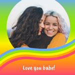 Kleurrijke valentijnskaart met foto en de tekst: Love you babe!