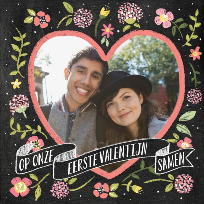 Verras je geliefde met deze lieve valentijnkaart van Greetz! Op de kaart staat: Op onze eerste Valentijn samen.