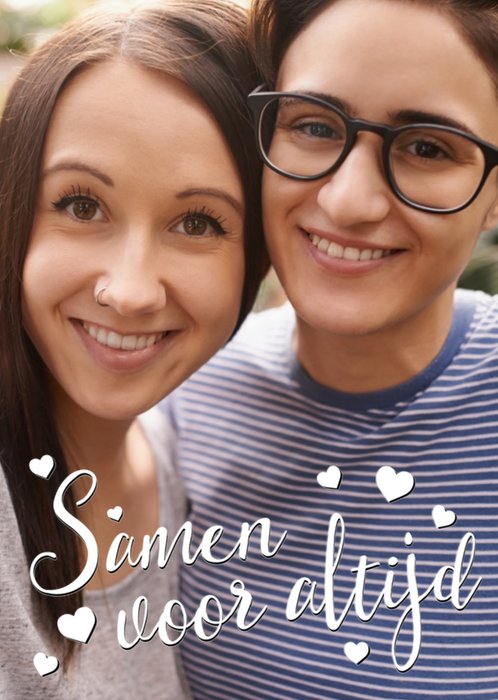 Een romantische kaart om te sturen van Greetz tijdens Valentijn. Op deze lieve valentijnskaart staat: Samen voor altijd.