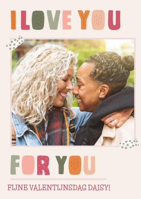Valentijn komt eraan en dat betekent dat jij je geliefde kunt verrassen met een leuke valentijnskaart. Op deze valentijnskaart van Greetz staat: I love you for you. Fijne valentijnsdag [naam].