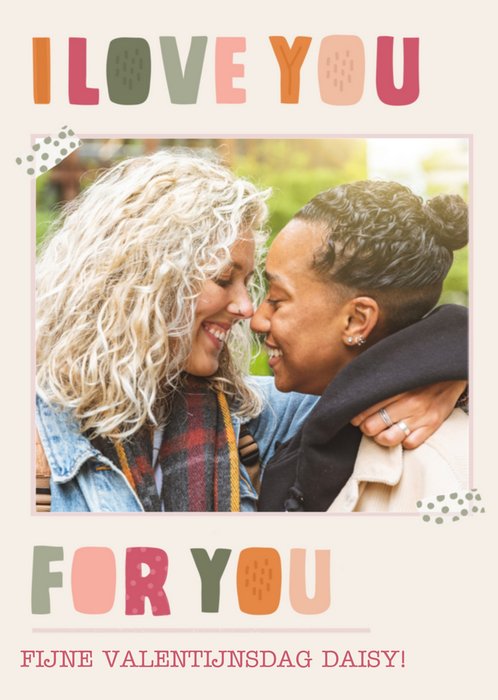 Valentijn komt eraan en dat betekent dat jij je geliefde kunt verrassen met een leuke valentijnskaart. Op deze valentijnskaart van Greetz staat: I love you for you. Fijne valentijnsdag [naam].