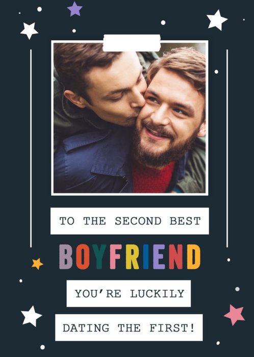 Grappige Valentijnskaart met foto en de tekst: To the second best boyfriend you're luckily dating the first!