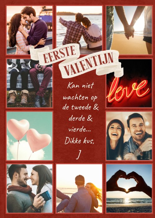Leuke fotokaart met aanpasbare tekst en de tekst: Eerste valentijn.